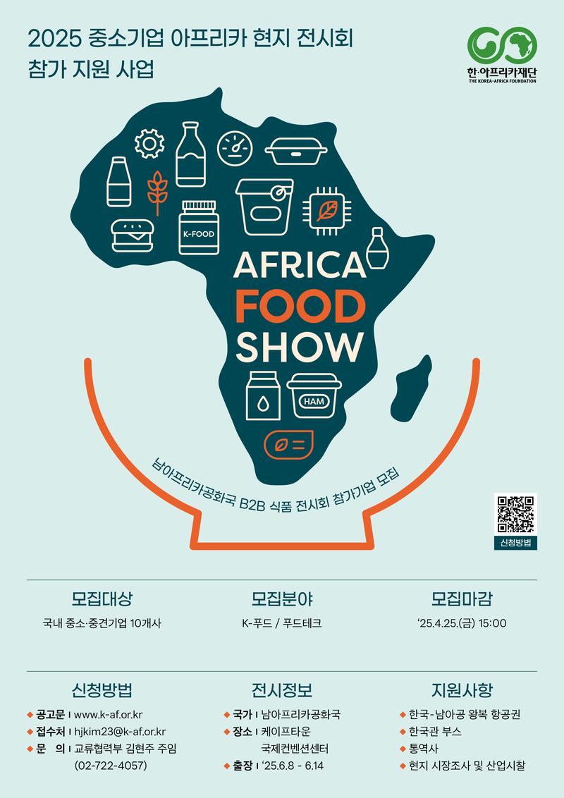 이번 남아공 B2B 식품 전시회(Africa Food Show) 참가를 통해 현지 바이어들과 직접 소통하고 판로 탐색하는 기회를 잡아보세요!💼✨