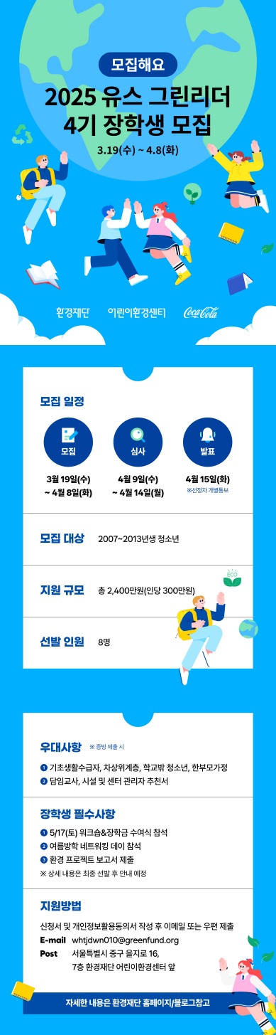 <유스 그린리더 장학사업> 4기 장학생을 모집합니다!