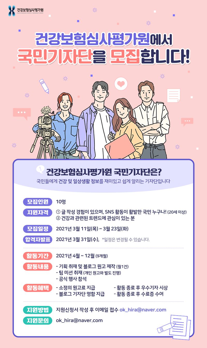 [건강보험심사평가원] 2021 국민기자단 모집