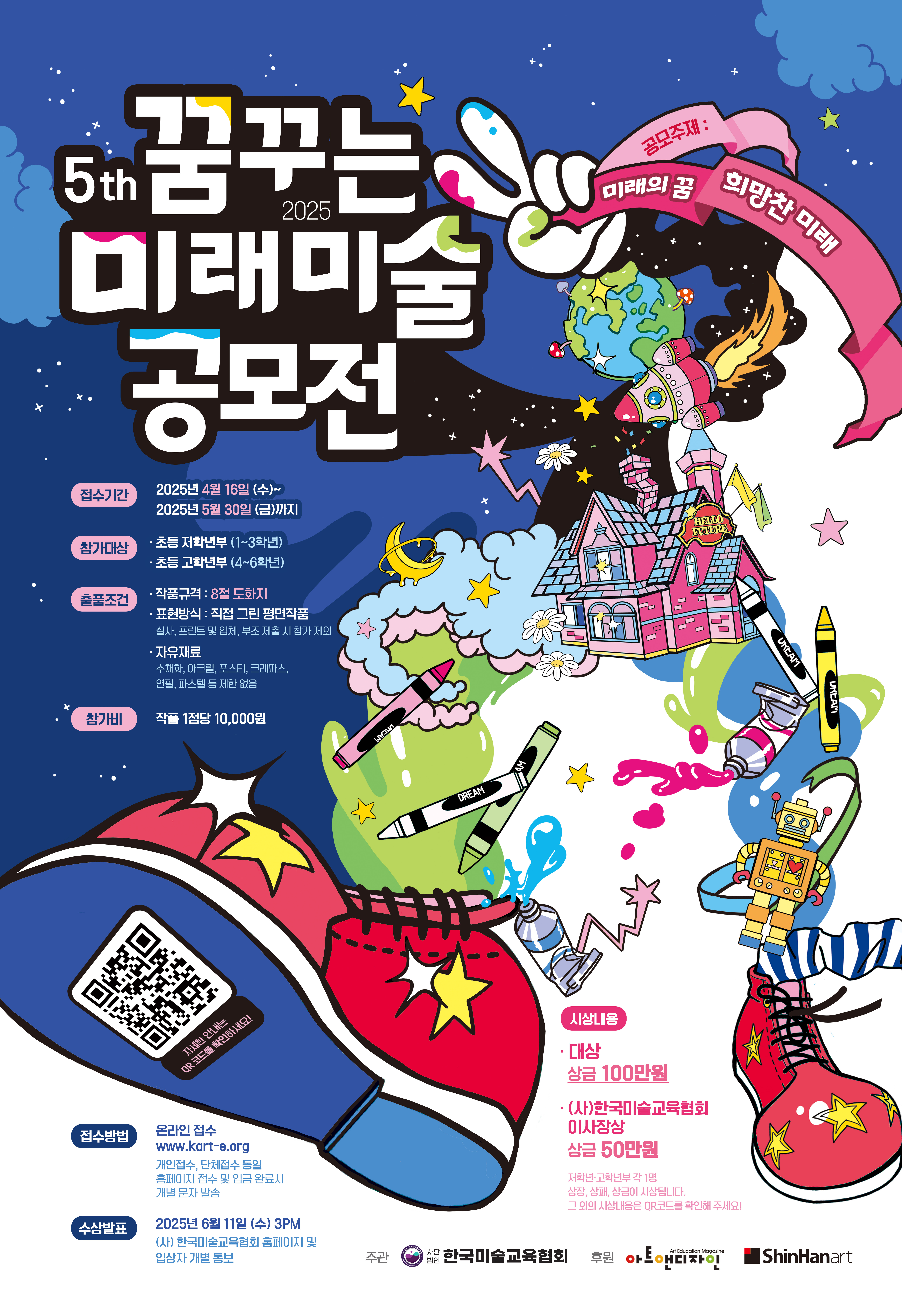 3. 출품작은 (사)한국미술교육협회의 정관에 따른 목적과 활동에 부합하는 용도로 활용될 수 있습니다. 이는 인쇄물, 보도자료 배포, 웹사이트 등을 포함합니다.