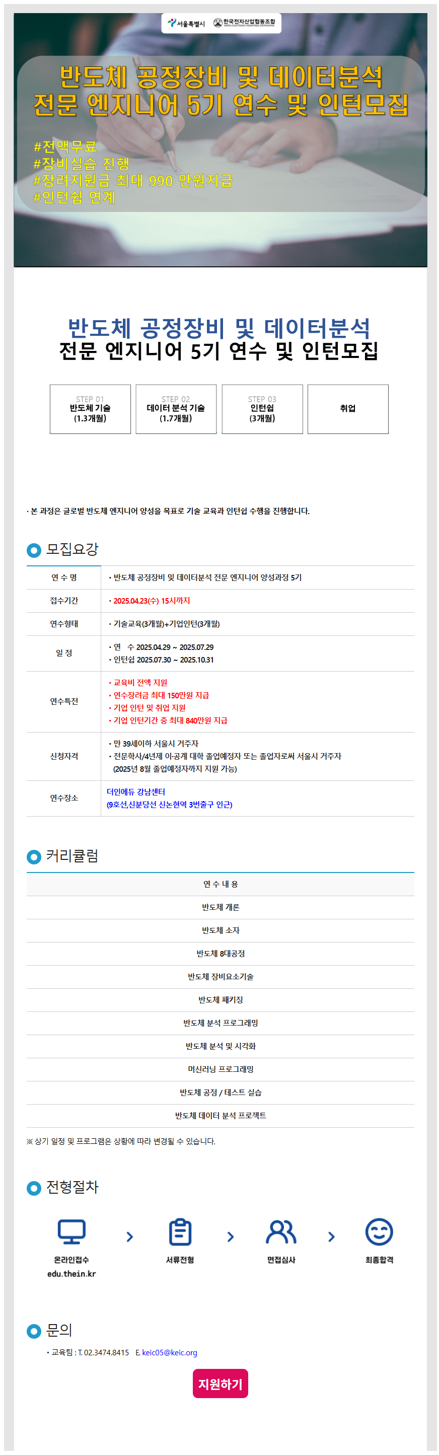 [서울시] 반도체 공정장비 및 데이터분석 전문 엔지니어 5기 연수 및 인턴 모집