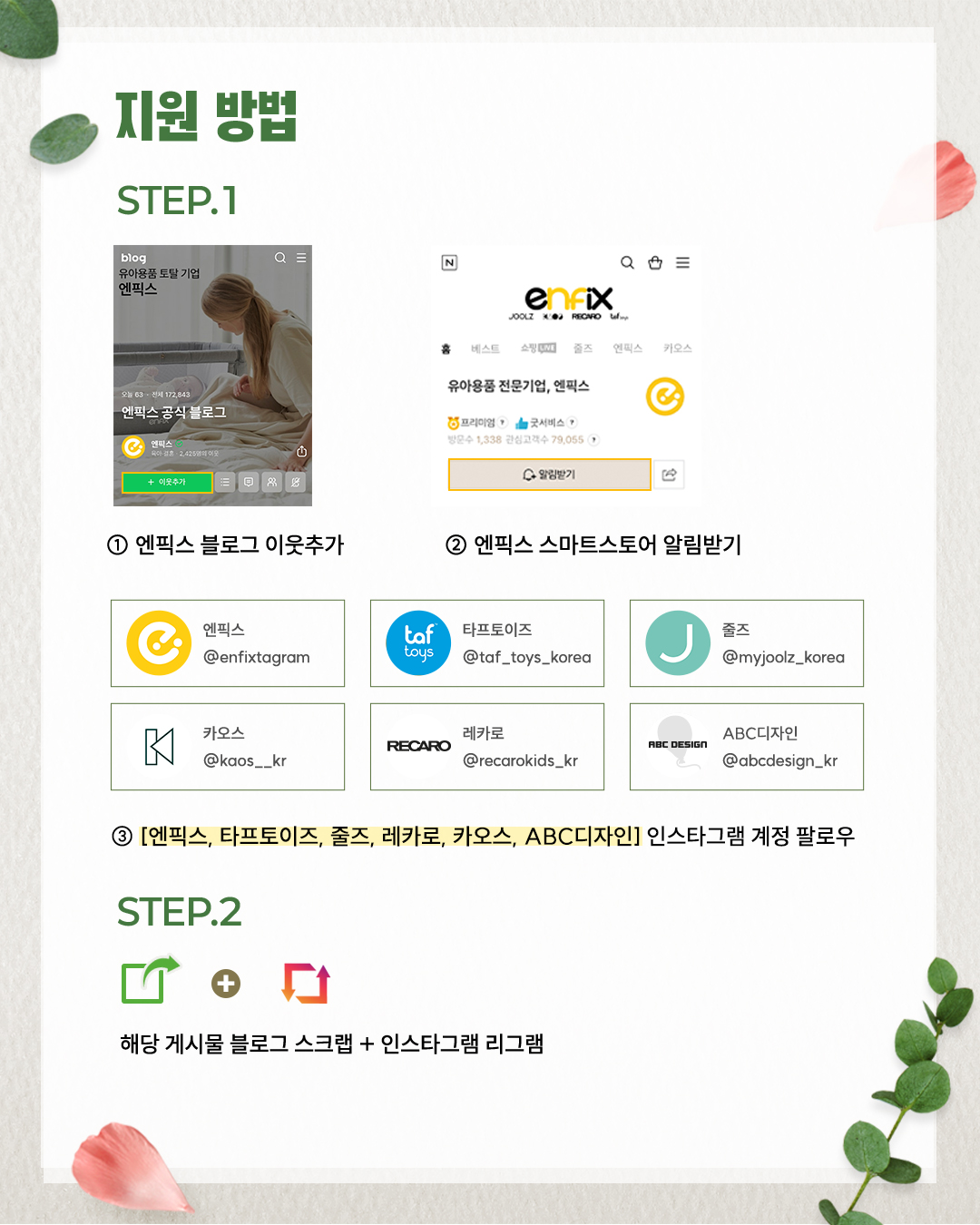 엔픽스 블로그 이웃추가 > 엔픽스&타프토이즈&줄즈&레카로&카오스&ABC디자인 인스타그램 팔로우 > 엔픽스 스마트 스토어 알림받기