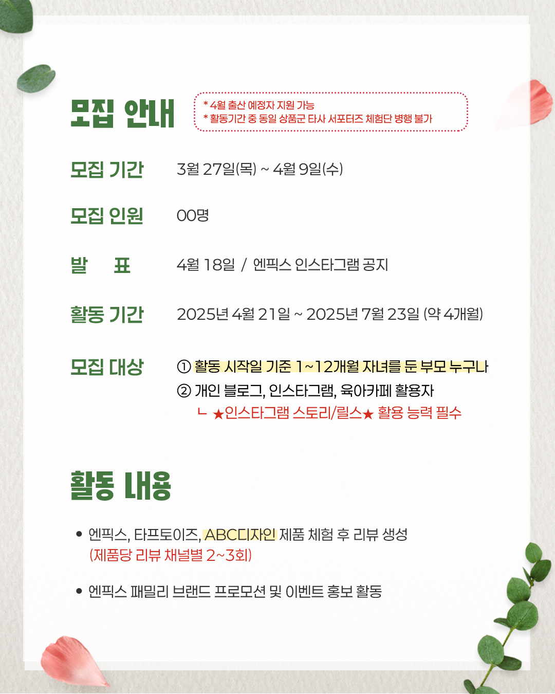 엔픽스 공식 서포터즈 ABC스타맘 11기를 모집합니다! :)💛
