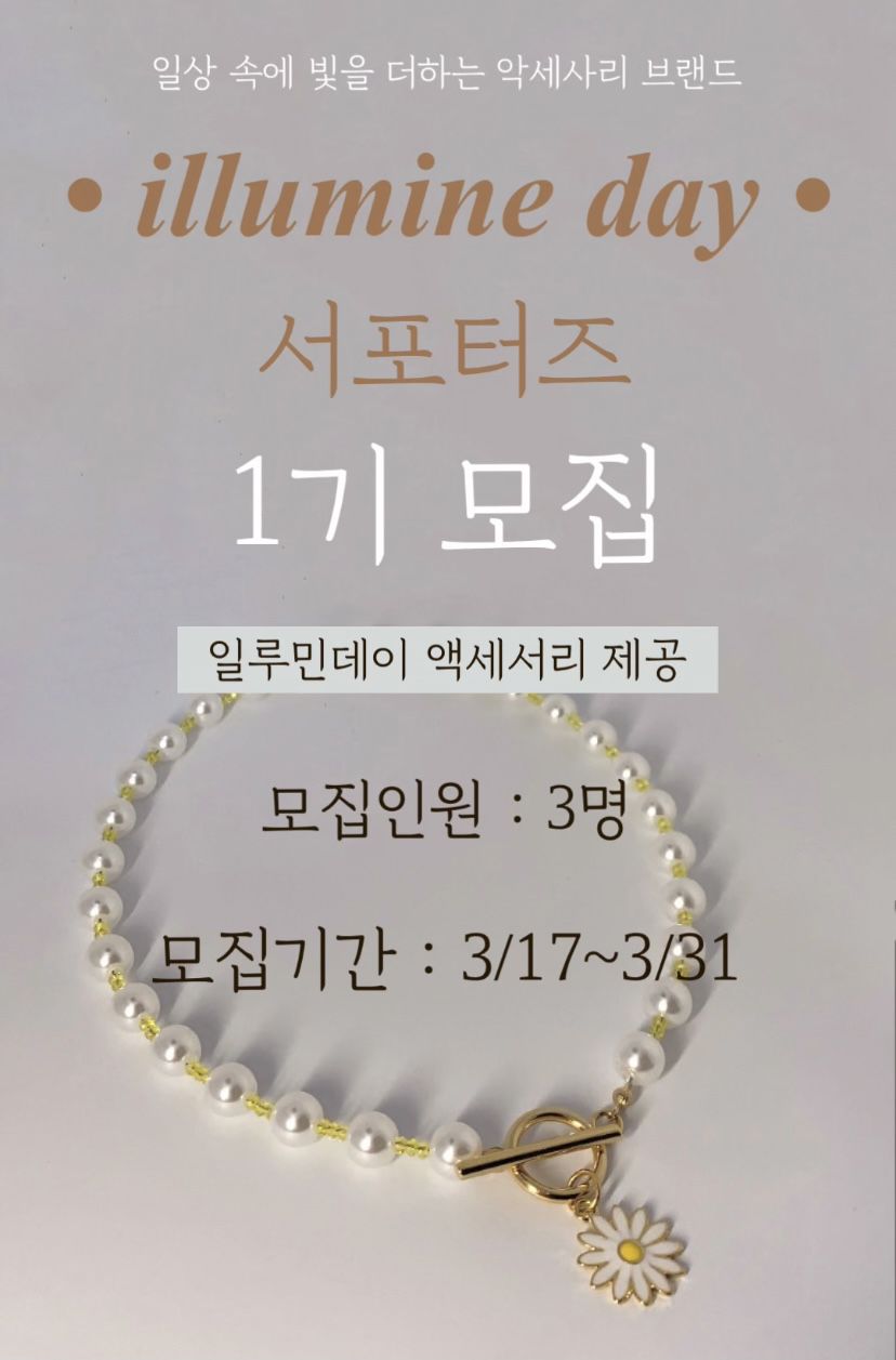 *일루민데이 서포터즈 미션에 대한 모든 내용은 홍보를 위해 일루민데이의 다양한 매체를 통해 활용 가능하며 일루민데이 서포터즈에 참여하신 회원님께서는 이에 동의하신 것으로 간주합니다.