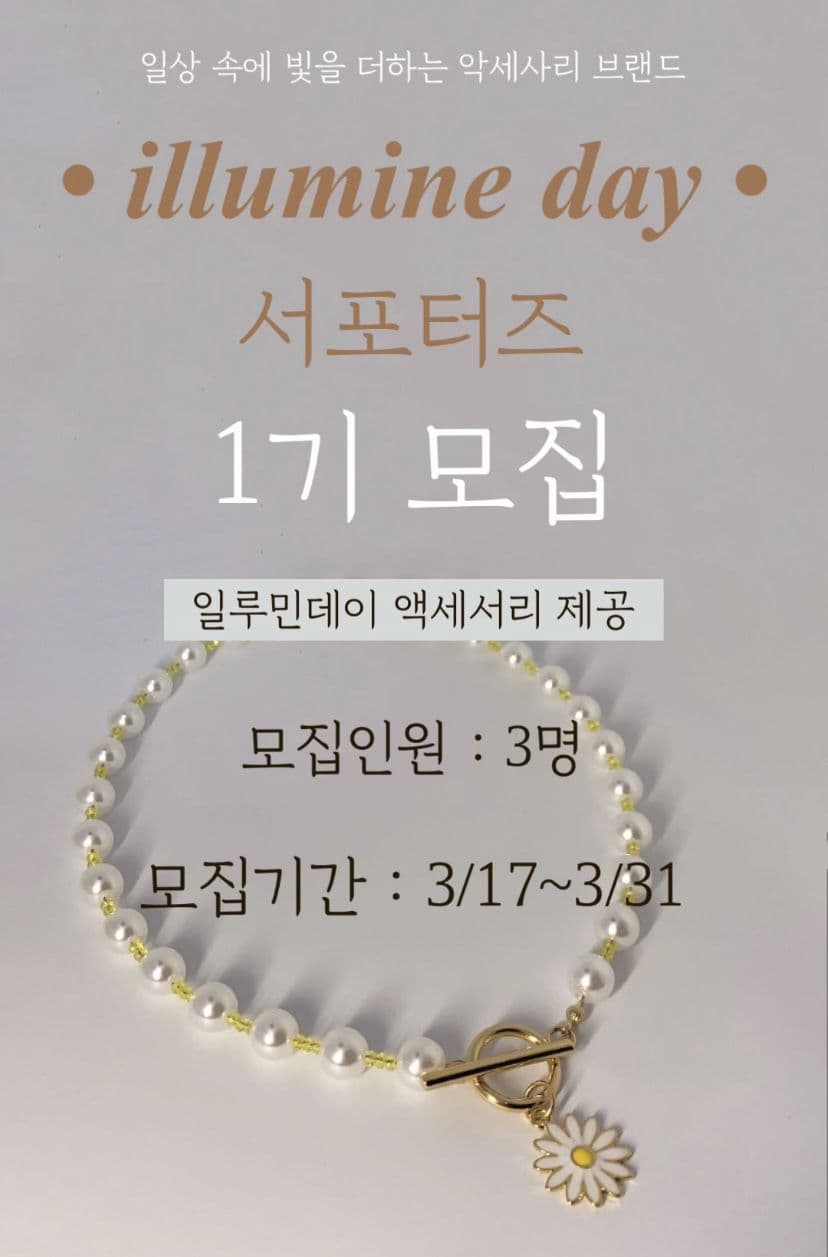 - 서포터즈 종료 후 우수 활동자 선정 소정의 선물 증정+일루민데이 신제품 제공