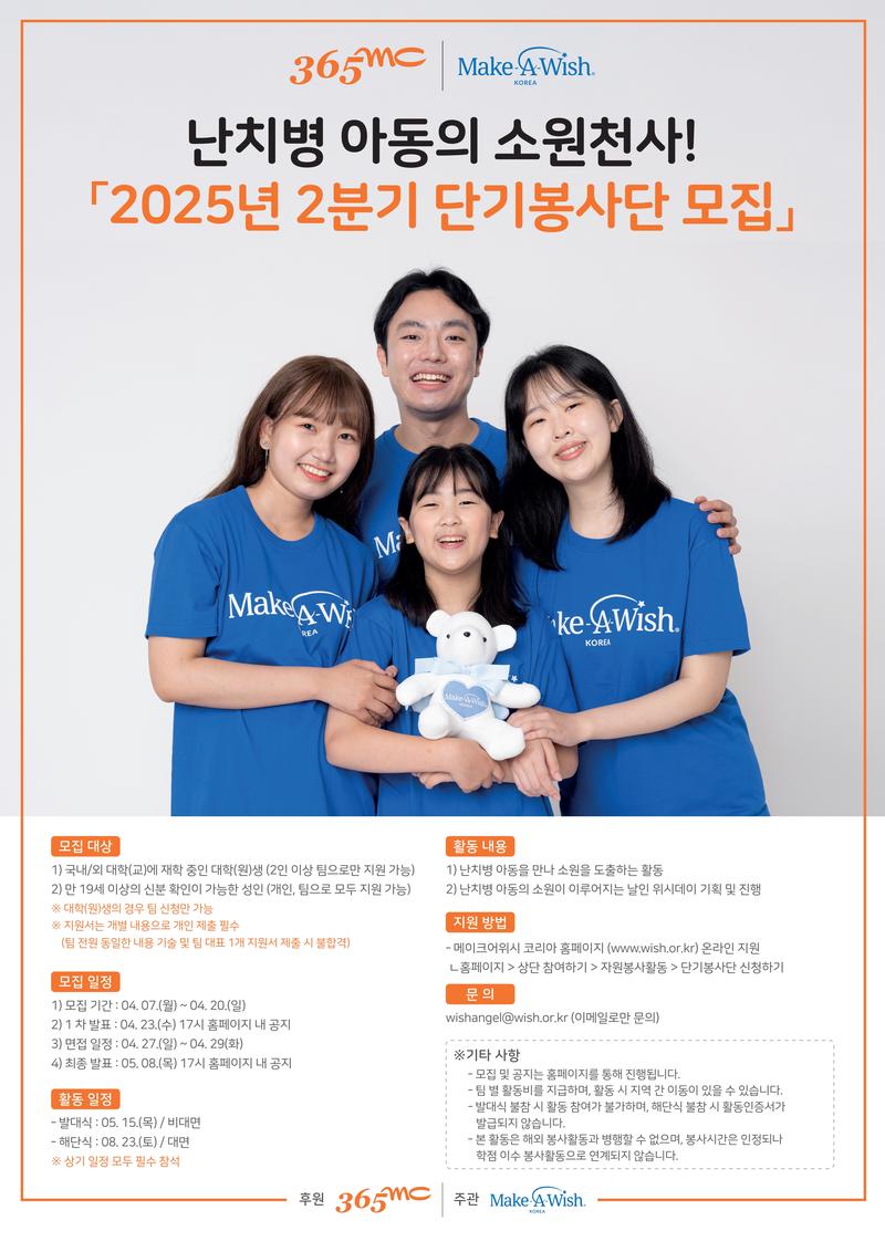 「2025년 2분기 단기봉사단」을 모집합니다.
