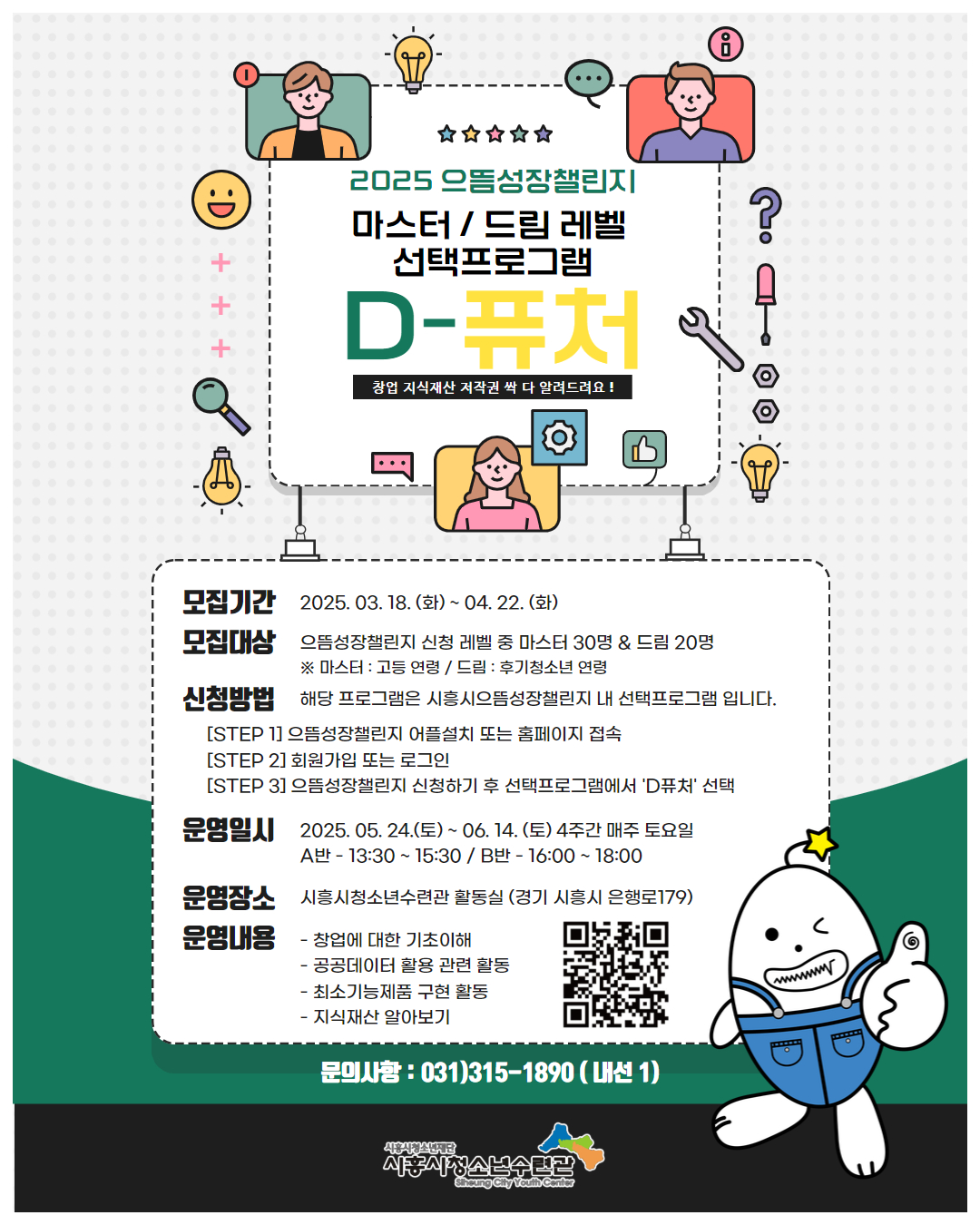 문의사항: 031)315-1890 (내선1) 청소년활동사업팀