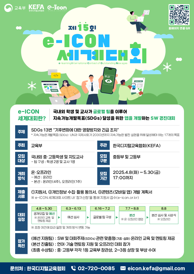 한국디지털교육협회에서 e-ICON 세계대회 국내 및 해외 참가자를 모집합니다.