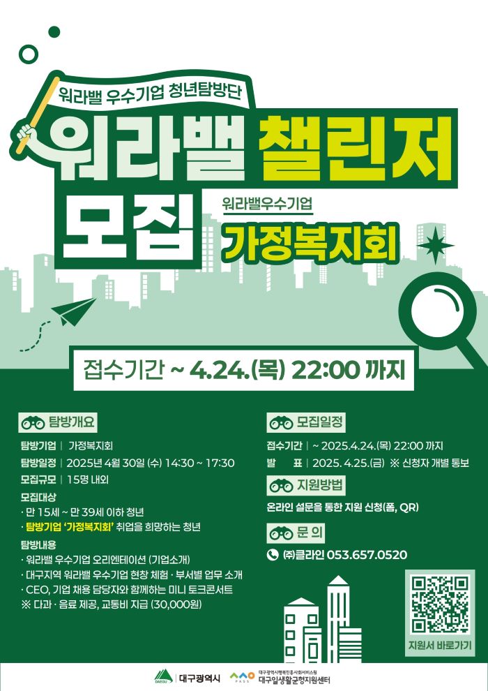 워라밸 우수기업 청년탐방단『워라밸 챌린저』를 모집합니다!
