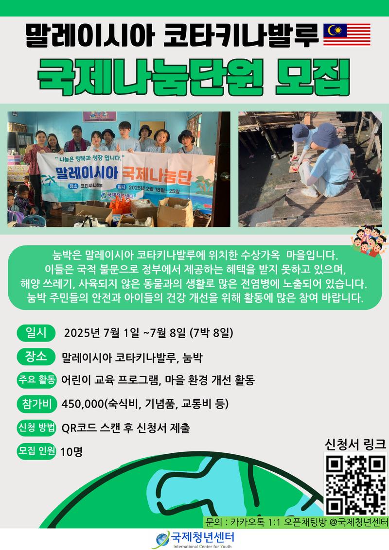 눔박의 어린이를 위한 교육 활동과 마을 주거환경 개선을 위한 활동에 참여할 국제나눔단원을 모집합니다.