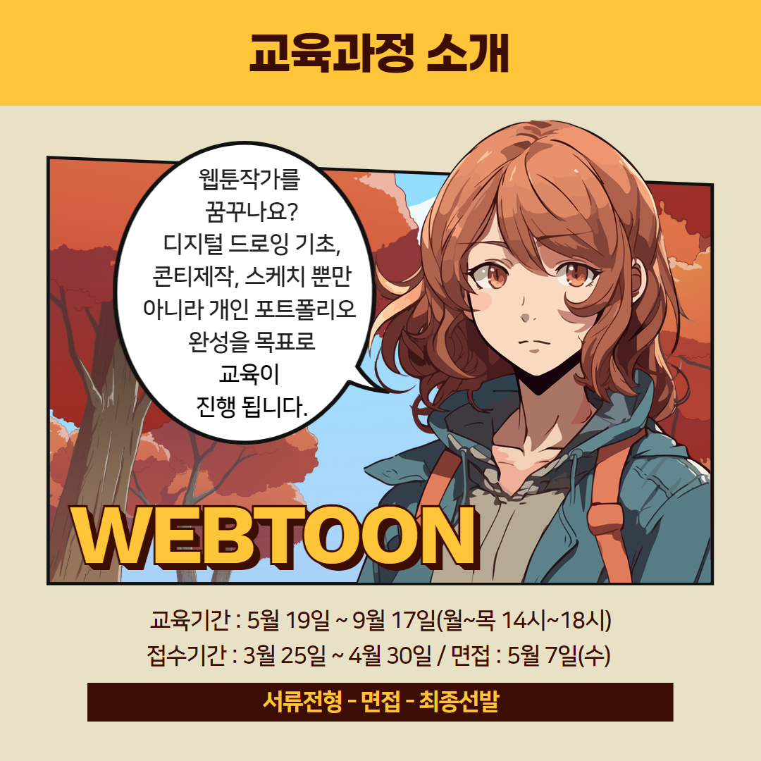 K-웹툰 크리에이터양성과정의 교육생을 모집합니다.