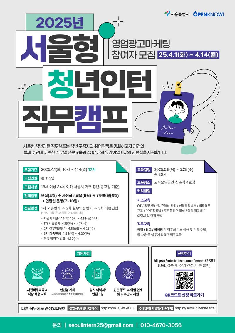 2025년 서울형 청년인턴 직무캠프(영업광고마케팅 분야)