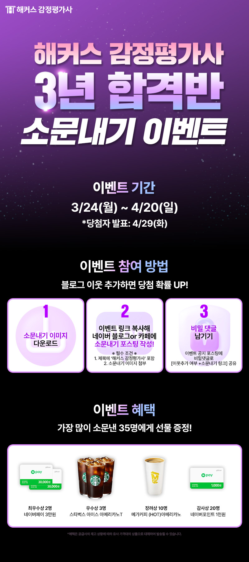 📢 해커스 감정평가사 3년 합격반 소문내고 네이버페이 3만원 받자! 📢