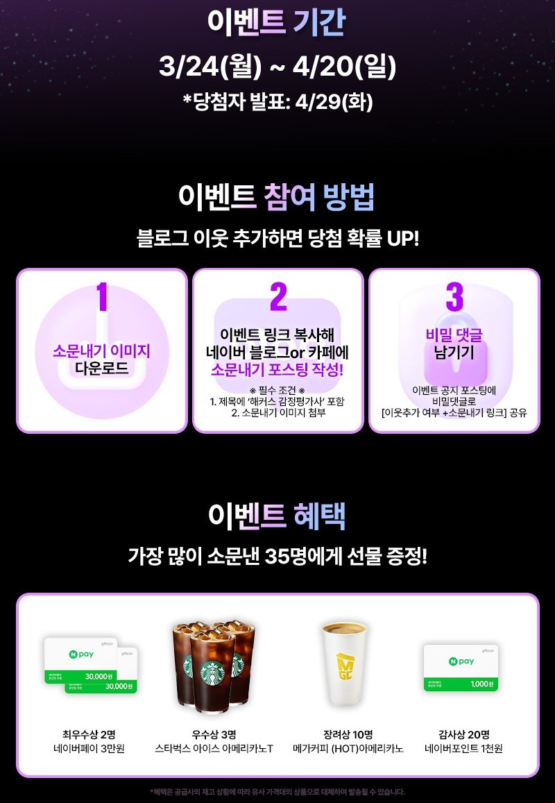 네이버페이 포인트 3만원권 / 스타벅스 아메리카노 / 메가커피 아메리카노 / 네이버페이 포인트 1천원권 증정! 🎁