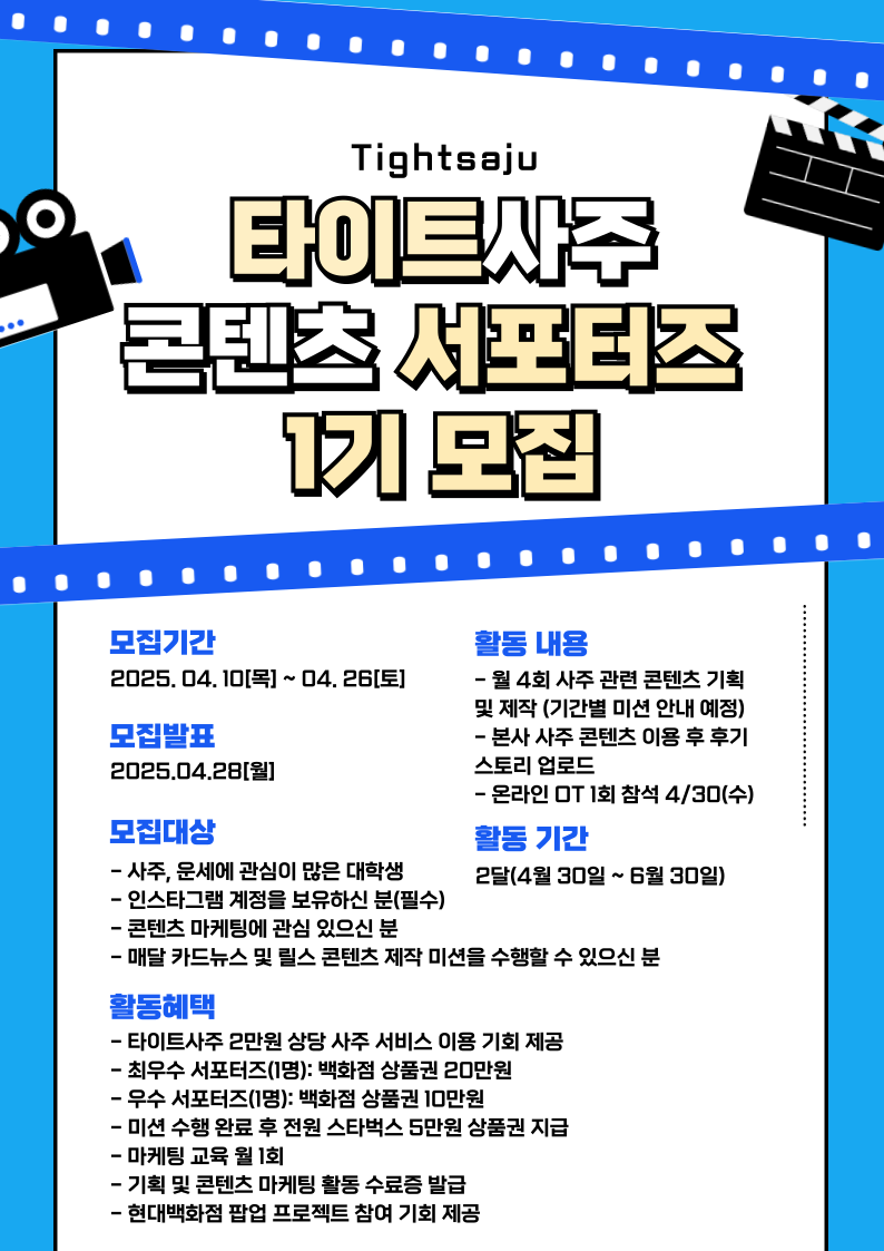 서포터즈 활동 중 제작해주신 콘텐츠는 타이트사주 마케팅에 활용됩니다.