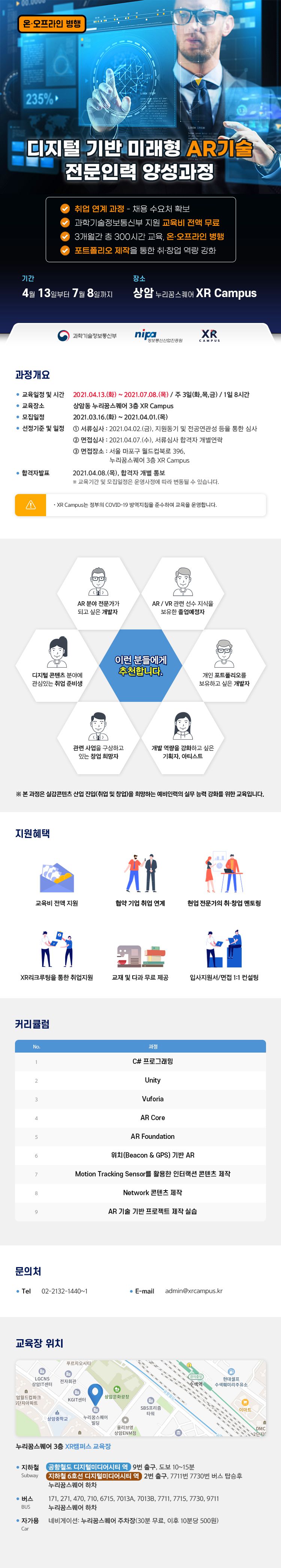 [2021.04.13.(화)~07.08.(목) 09:00~18:00] "디지털 기반 미래형 AR기술 전문인력 양성과정"