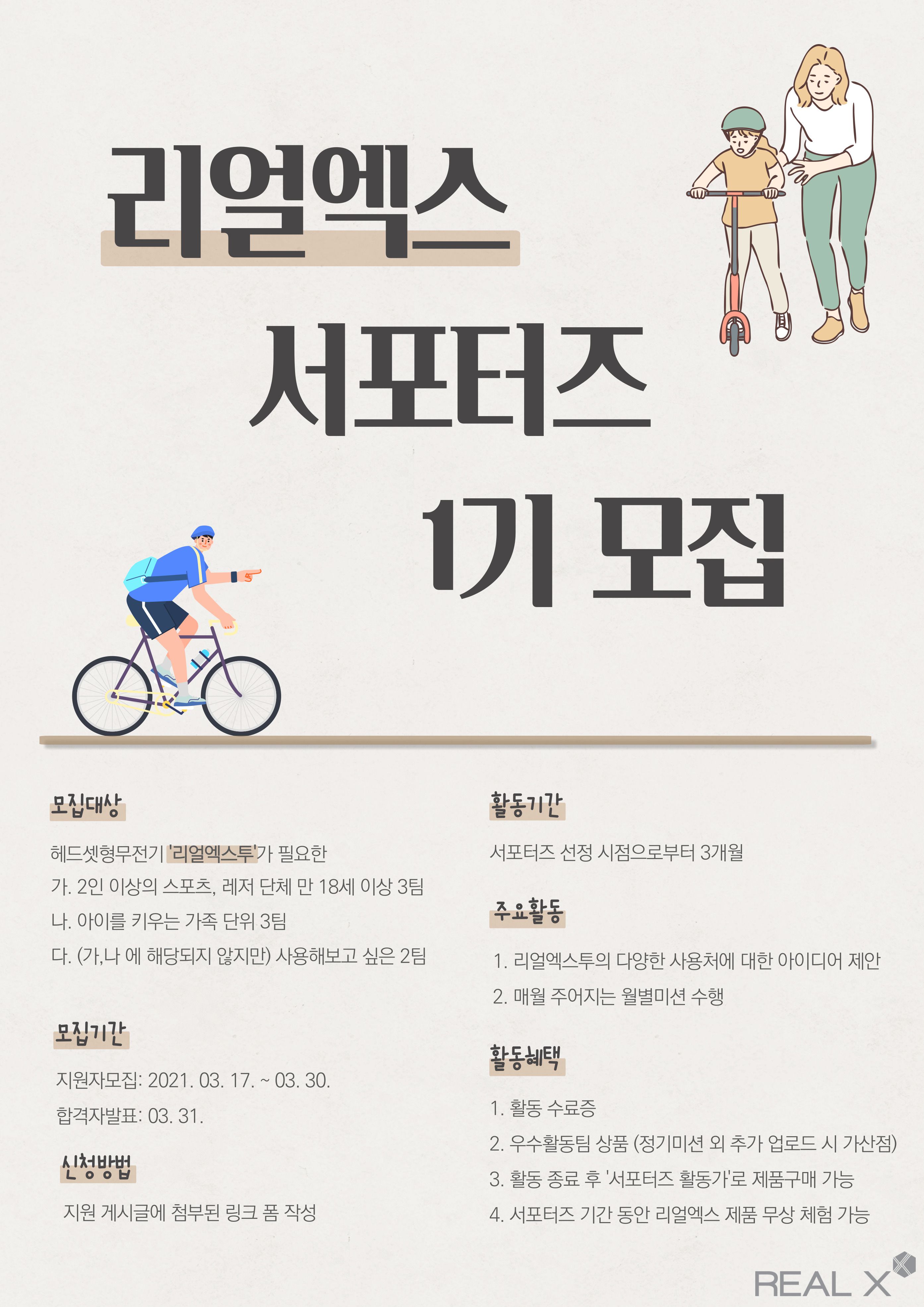 4) 서포터즈 기간 동안 리얼엑스 제품을 무상으로 체험 가능.