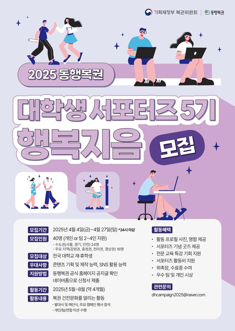 2025 동행복권 청년 서포터즈 행복지음 5기를 모집합니다! (4/27까지)