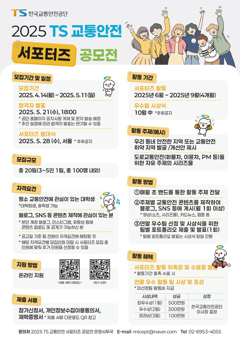 2025 TS 교통안전 서포터즈 공모전을 아래와 같이 개최하오니, 많은 지원 바랍니다.