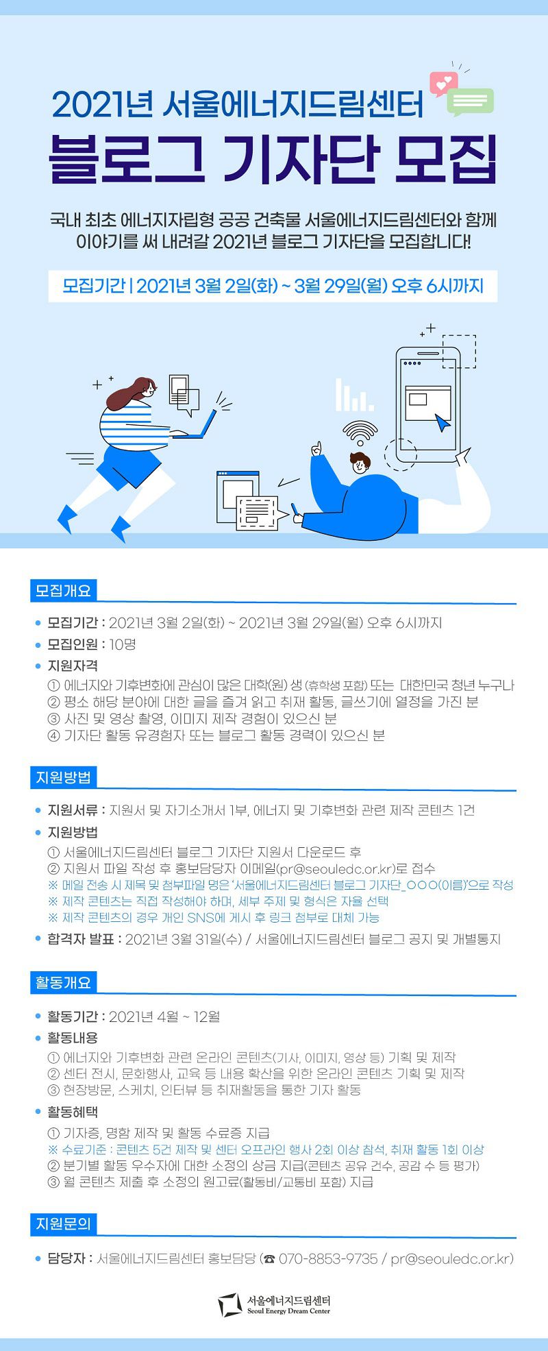 ※ 메일 전송 시 제목 및 첨부파일 명은 '서울에너지드림센터 블로그 기자단_(이름) 으로 작성