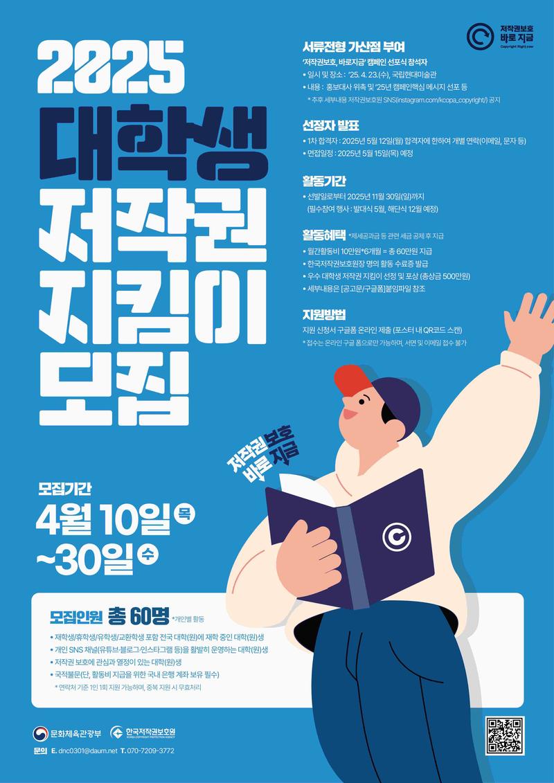 - 우수 대학생 저작권 지킴이 선정 및 포상 (총상금 500만원)