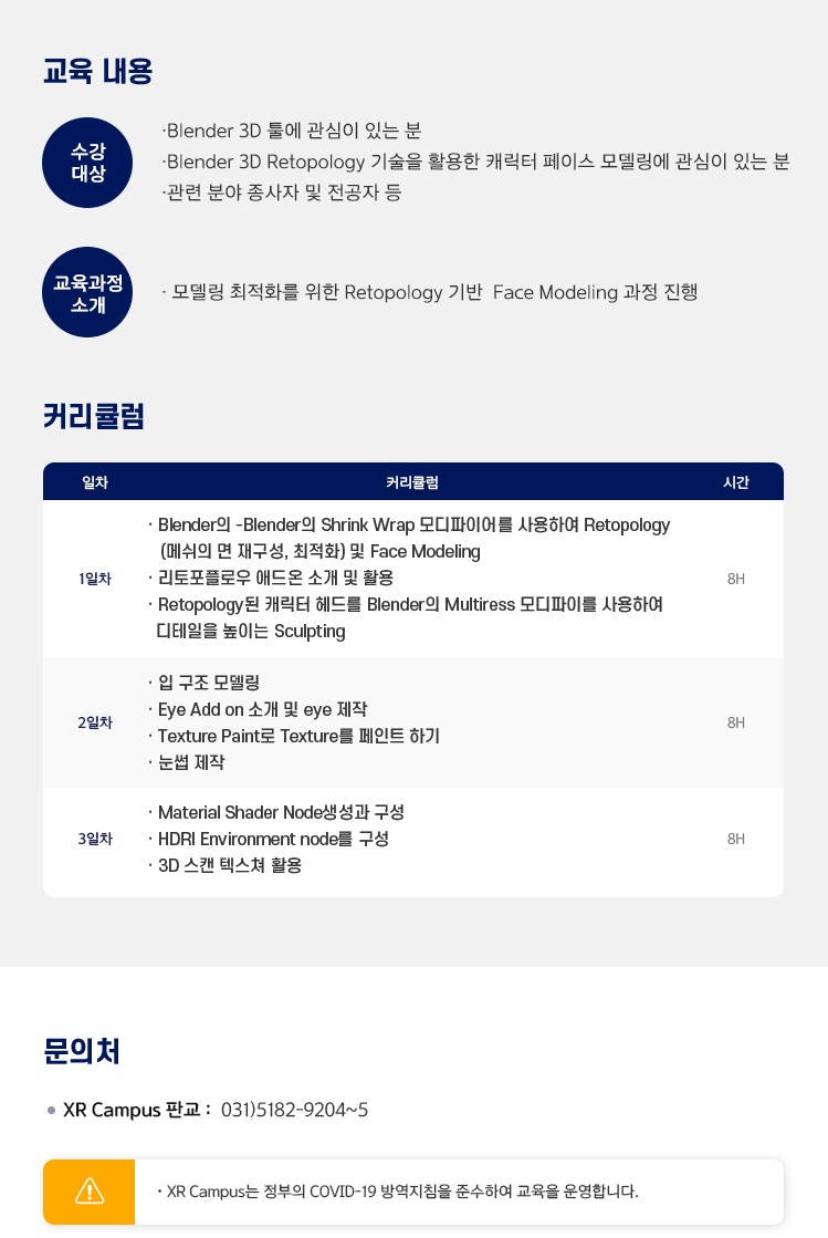 ②교 육 내 용 : 모델링 최적화를 위한 Retopology 기술을 활용한 캐릭터페이스 모델링에 관심있는 분