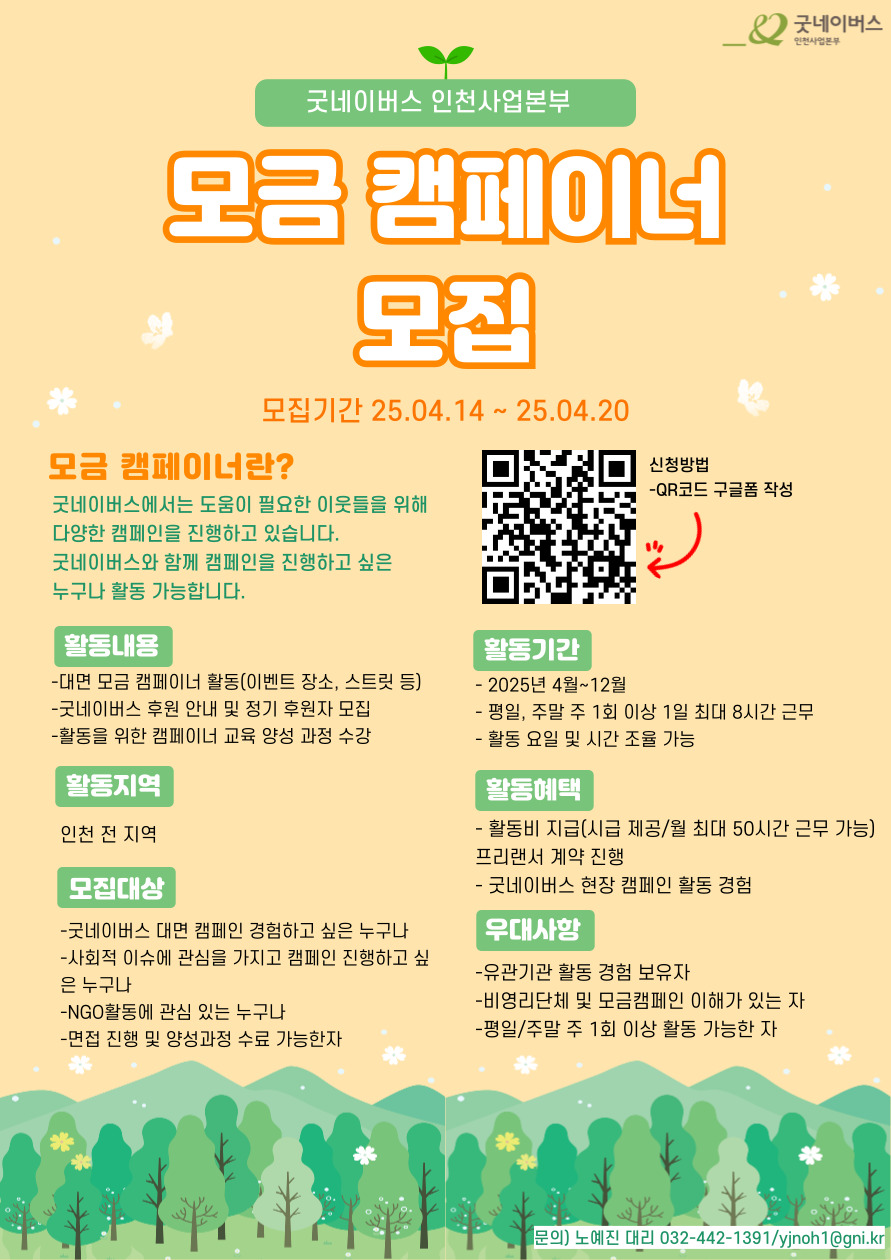 [모집] 2025년 굿네이버스 인천사업본부 모금 캠페이너 모집