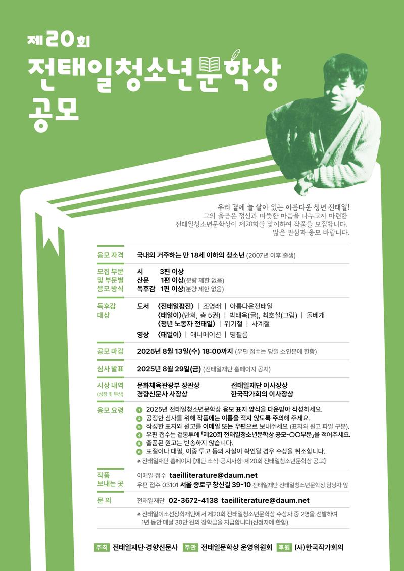 문의 전태일재단 ┃ 전화 02-3672-4138 ┃ 이메일 taeilliterature@daum.net