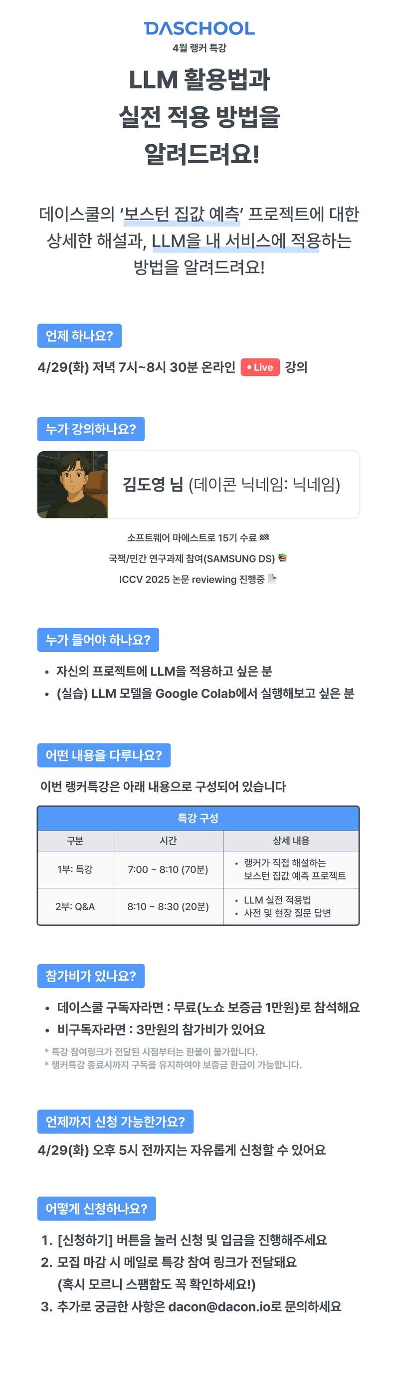 4/29(화) 오후 7시~8시 30분 온라인 Live 강의