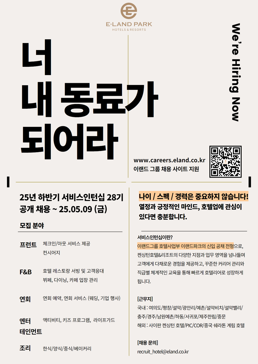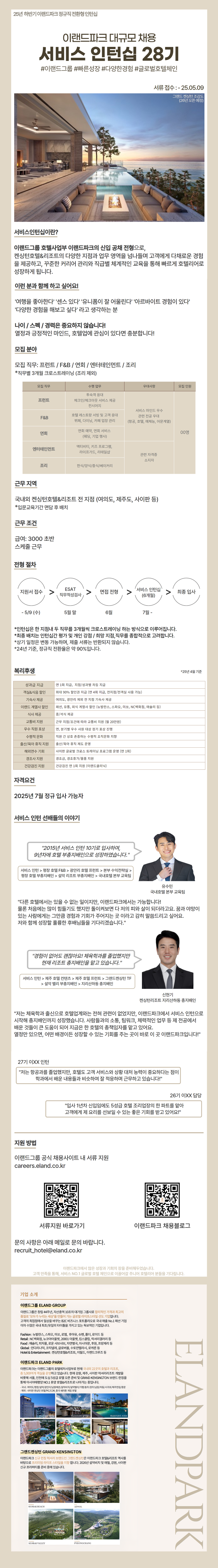 ⭐25년도 하반기 이랜드파크 서비스인턴십 28기를 모집합니다!⭐