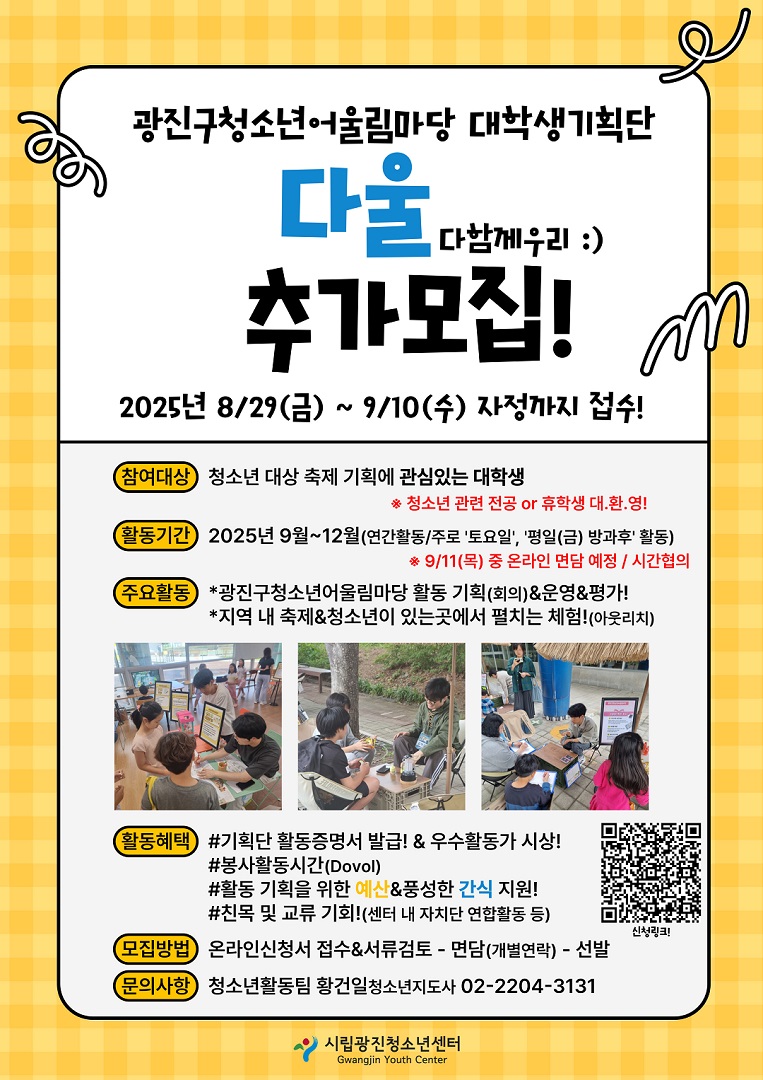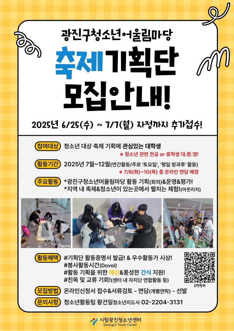 [2025년 광진구청소년어울림마당 '대학생기획단' 추가모집]