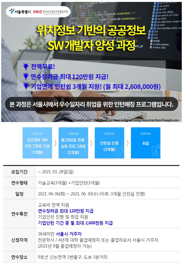 * 교육일정 : 3.22일~ 3개월 간 / 기업인턴 : 6.21일 교육종료 후 3개월 간