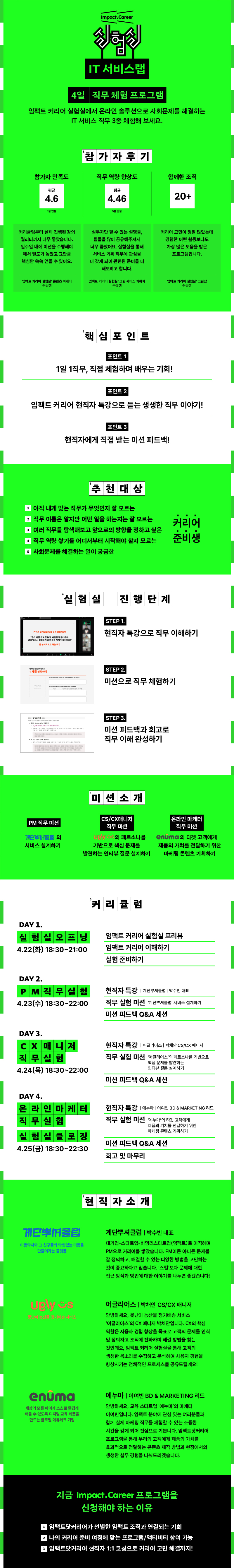 딱 4일, 임팩트 커리어 실험실에서 IT 서비스 3종 직무 체험해 보세요!