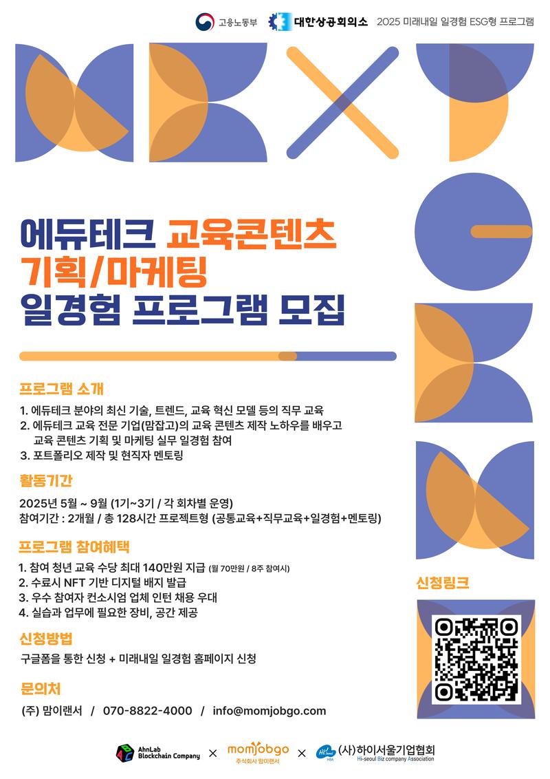 에듀테크 분야에 관심 있는 청년들을 대상으로 직무교육과 실무 프로젝트를 연계한 일경험 프로그램을 운영합니다.