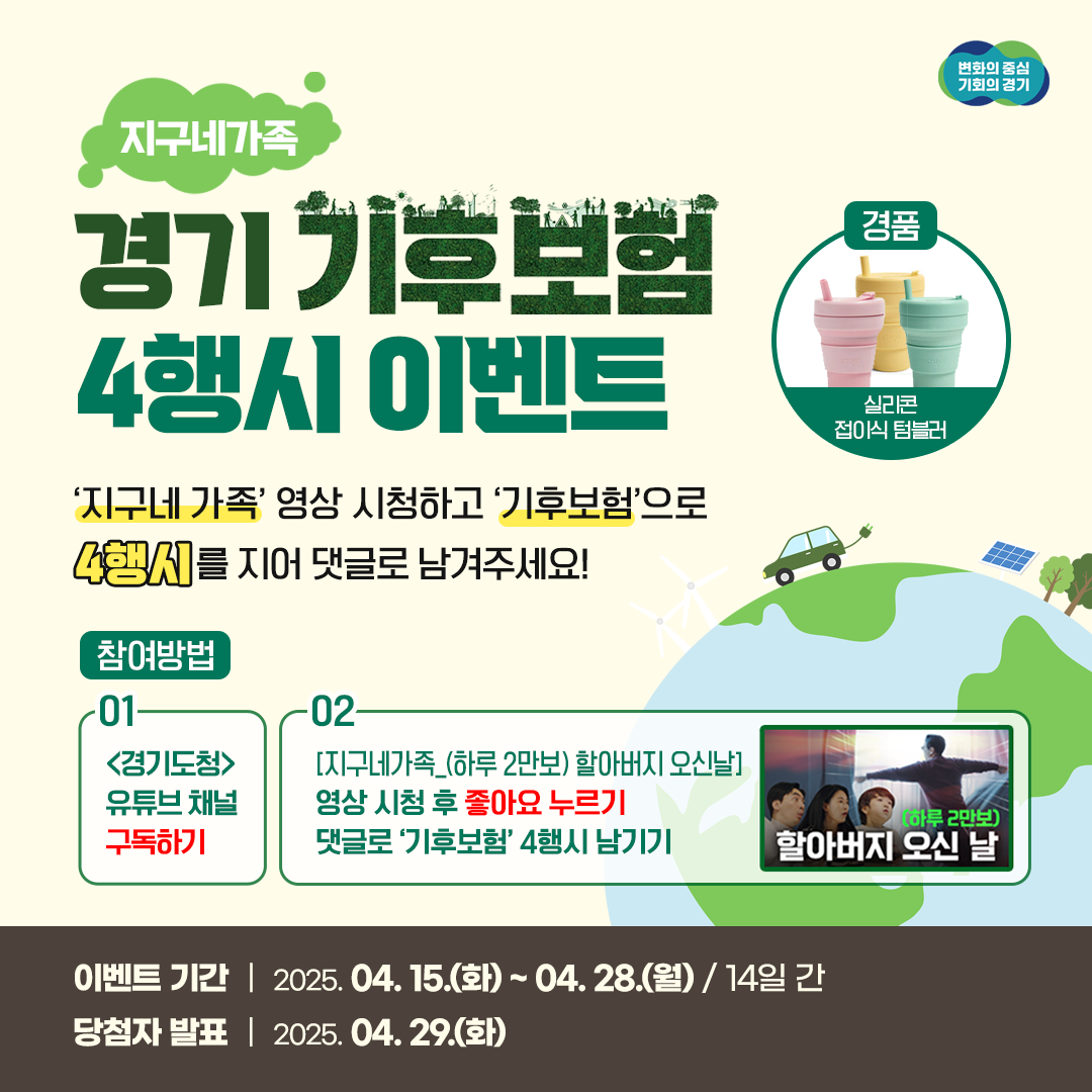 📅 당첨자 발표: 2025. 04. 29.(화), 경기도 유튜브 채널 게시물 공지