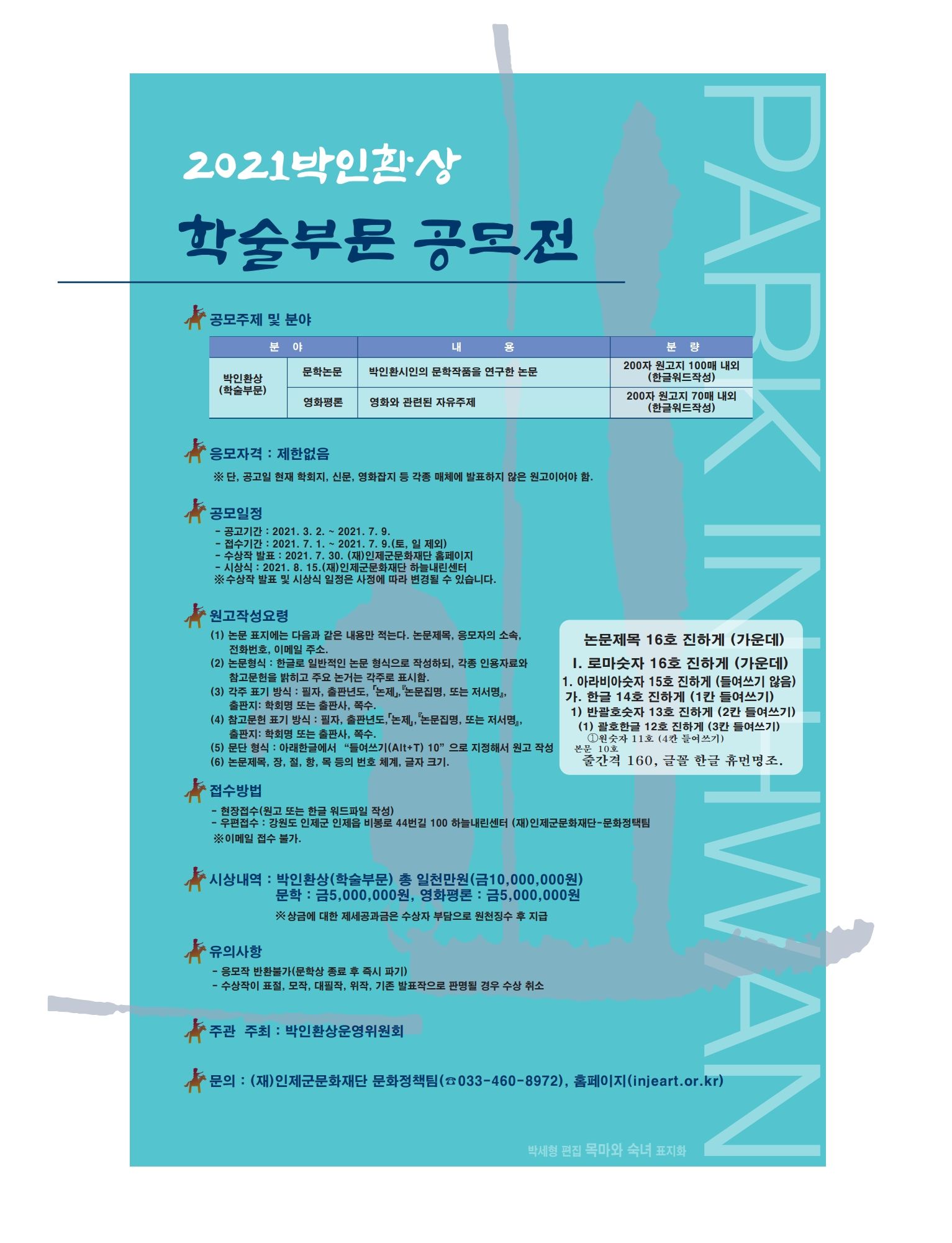 ■ 당선작발표 : 2021. 7. 30. (재)인제군문화재단 홈페이지