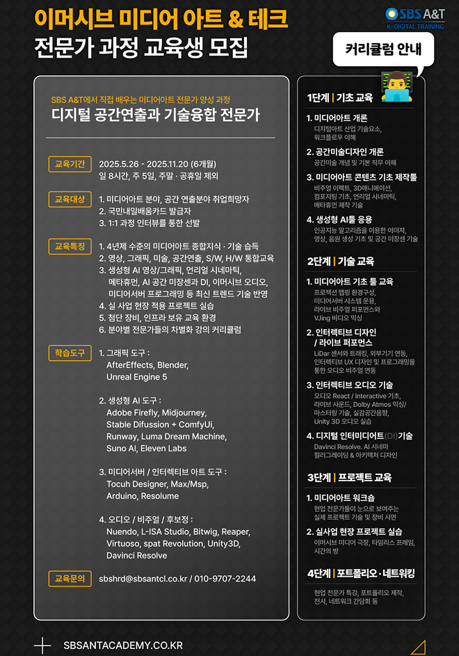 ✨ [SBS A&T 이머시브 미디어 아트&테크 전문가 과정] 수강생 모집 ✨