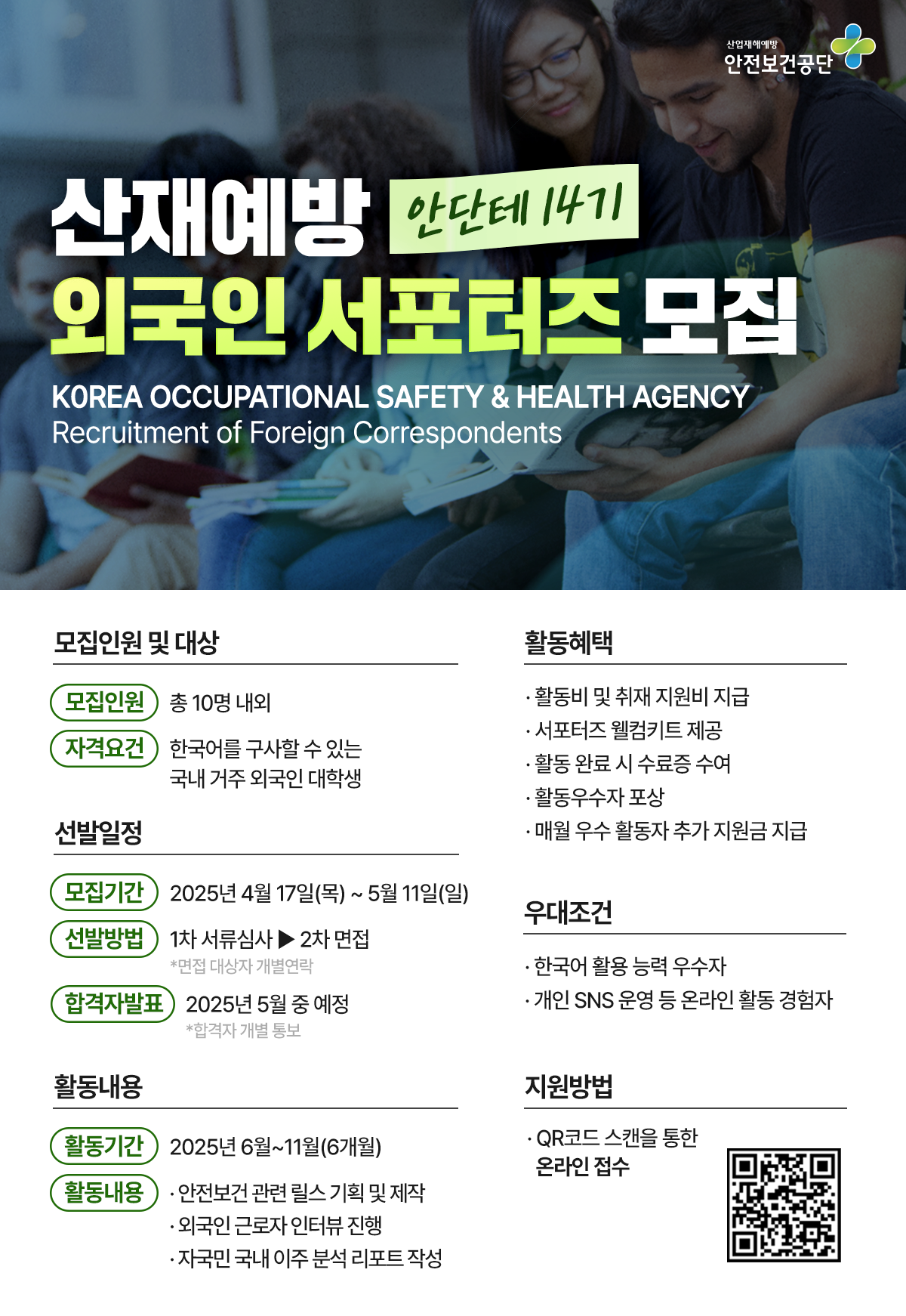 안전보건공단 산재예방 외국인 서포터즈 모집합니다!🎈
