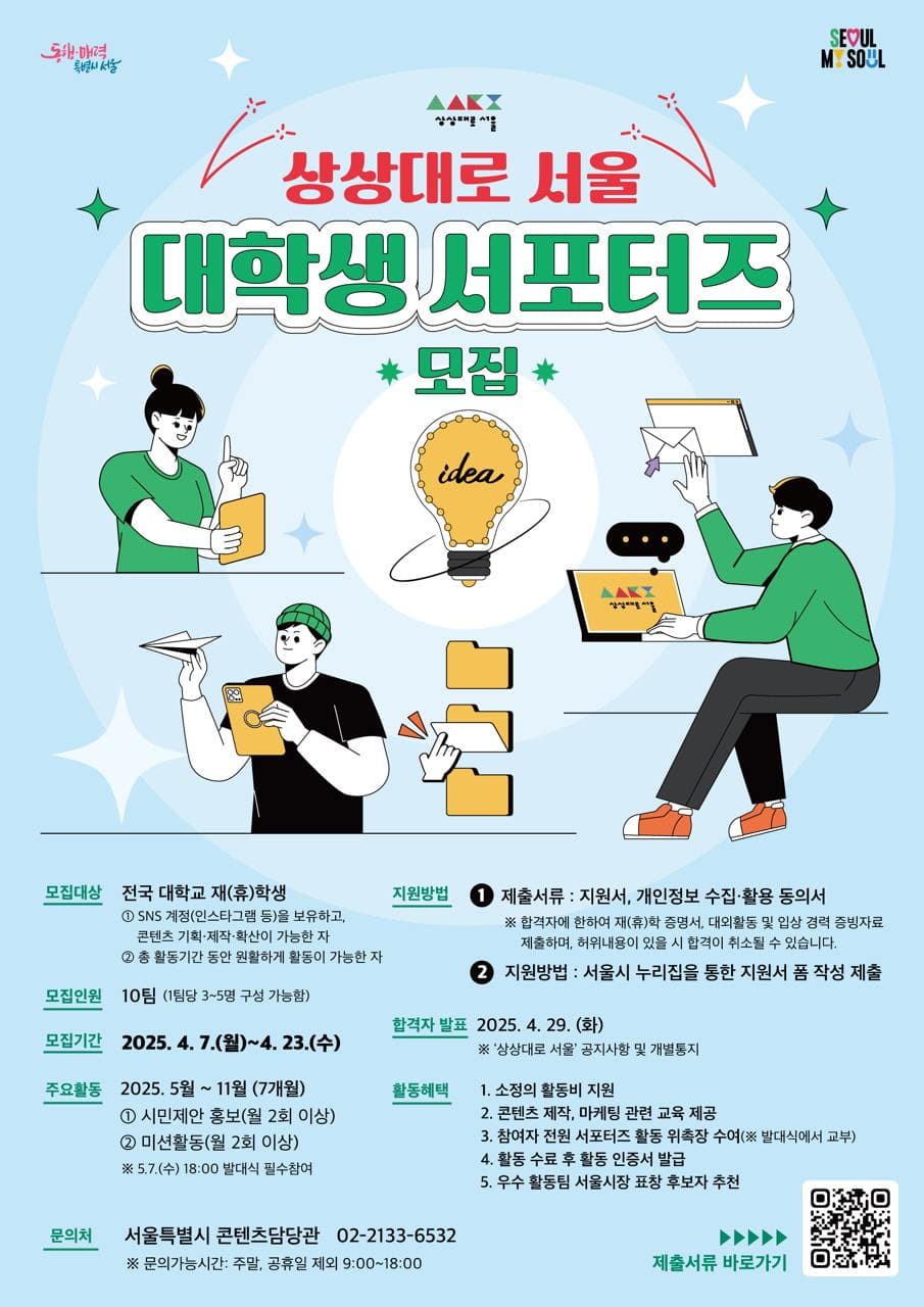 [2025년 '상상대로 서울' 대학생 서포터즈 6기 모집]