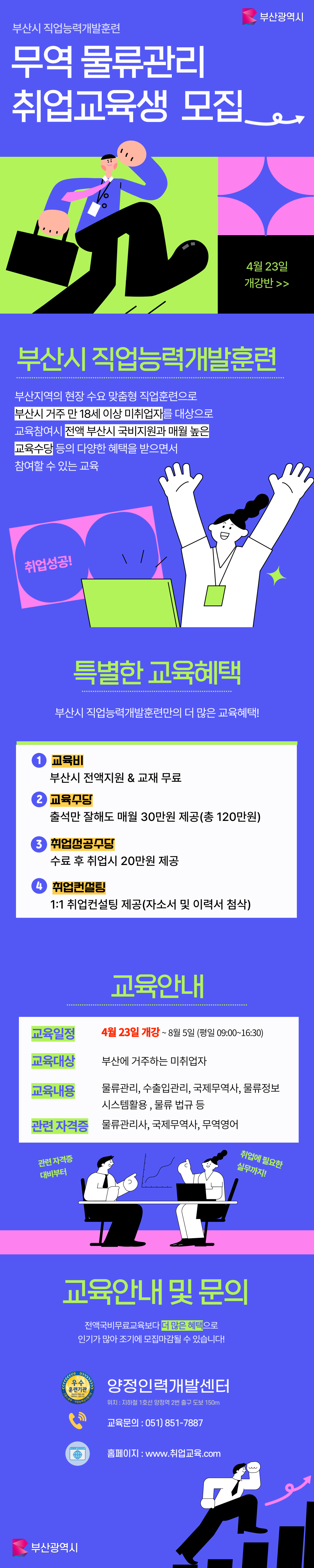 - 교육장소 : 우수훈련기관 양정인력개발센터(부산)