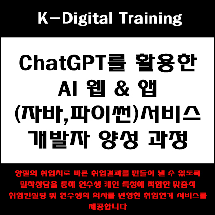 훈련과정 - ChatGPT를 활용한 AI 웹 앱(자바,파이썬)서비스 개발자 양성 과정