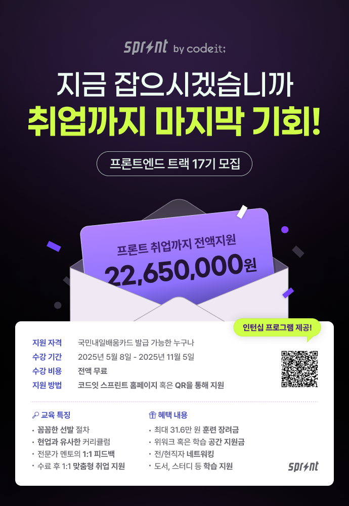 코드잇 스프린트 지금 모집 중 ➡️ https://code.it/3QSt53d
