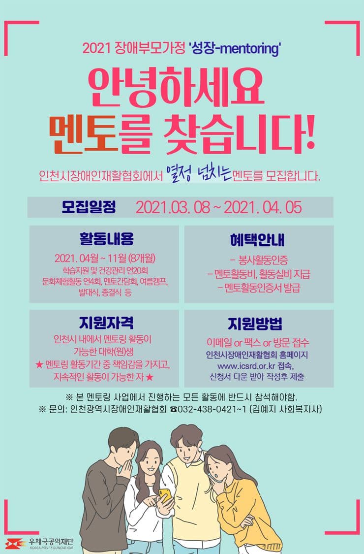인천광역시장애인재활협회 2021 장애부모가정아동 성장-mentoring 멘토 모집