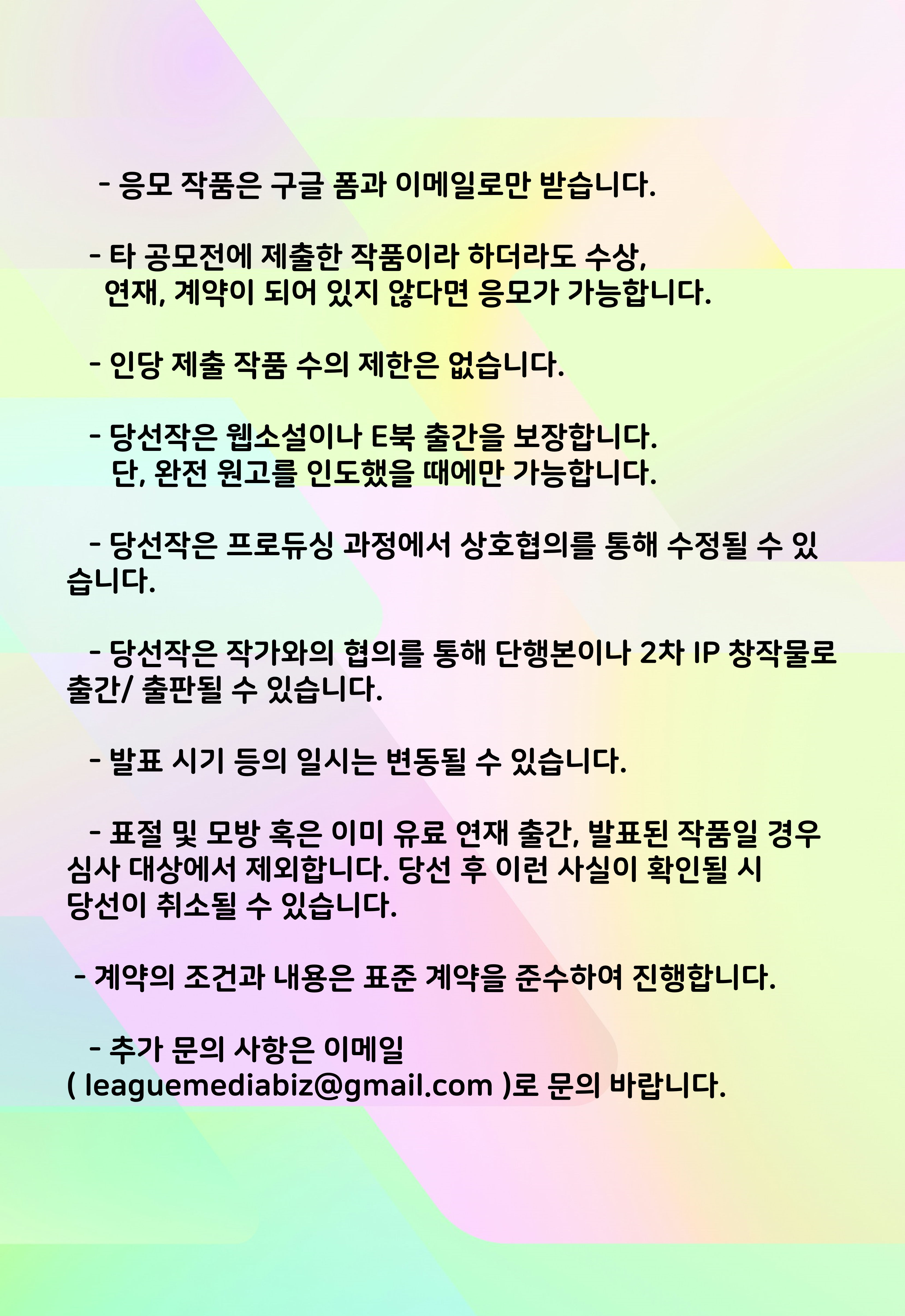 - 특전: 정식 연재의 기회 및 출간 보장 (완전원고 인도시)