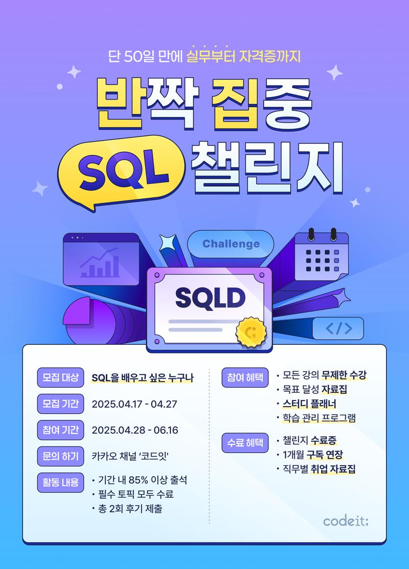 SQL 50일 반짝 챌린지 바로가기 → https://code.it/7oVsq8C