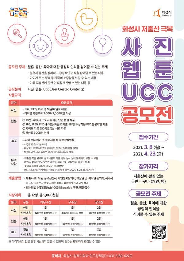 2021 화성시 저출산 극복 사진, 웹툰, UCC 공모전