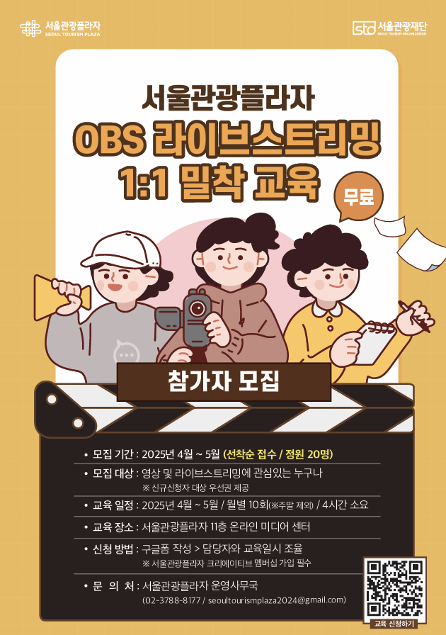 ⭐️서울관광플라자에서 OBS 라이브스트이밍 1:1 밀착교육 교육생 모집합니다!⭐️