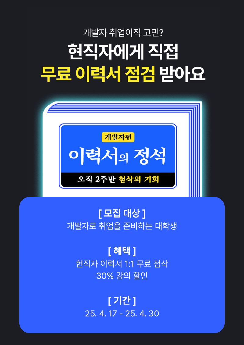 [ 혜택 ]- 현직자에게 이력서 1:1 무료 첨삭- 30% 강의 할인