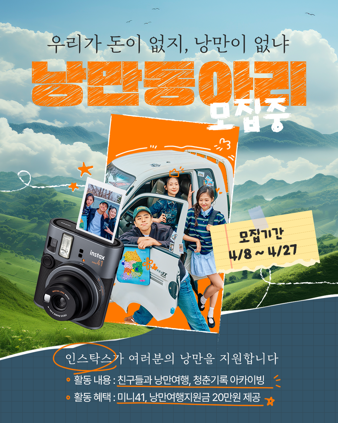 - (개인) 즉석카메라 미니41 필름 세트 + 낭만여행지원금 20만 원