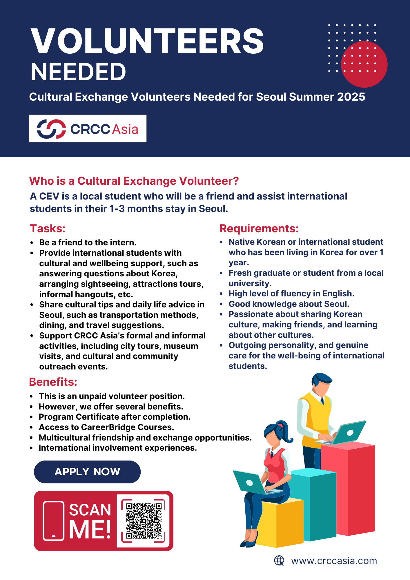 - 모집요건: 외국 대학생들에게 한국 문화를 소개하고 싶은 대학생,